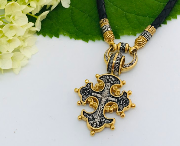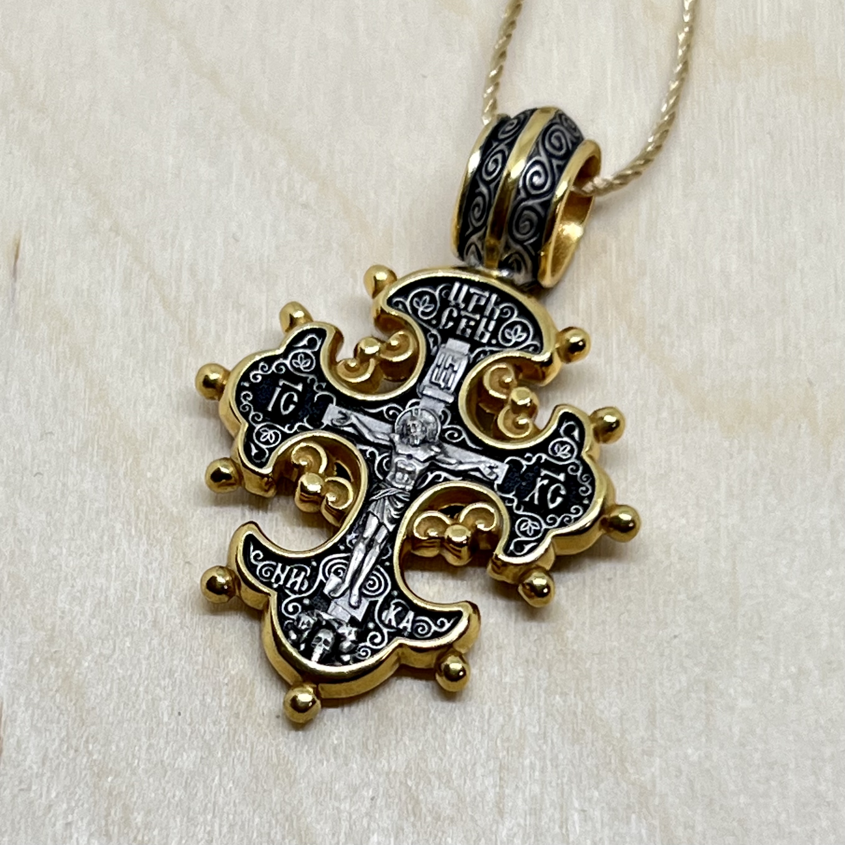 На лицевой стороне креста изображено Распятие Господа нашего Иисуса Христа.