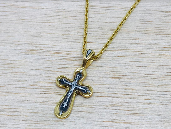 На лицевой стороне изображено Распятие Господа Иисуса Христа.