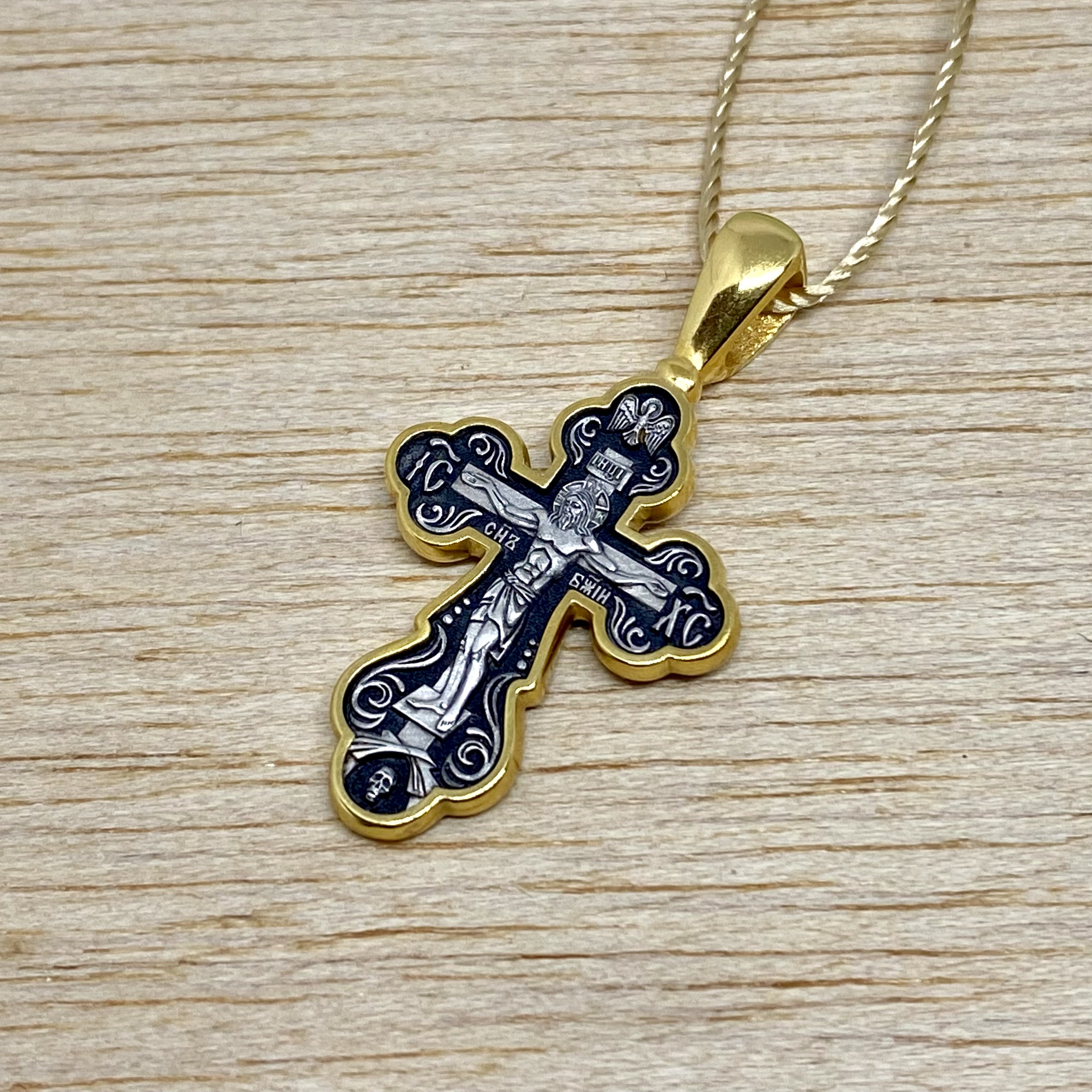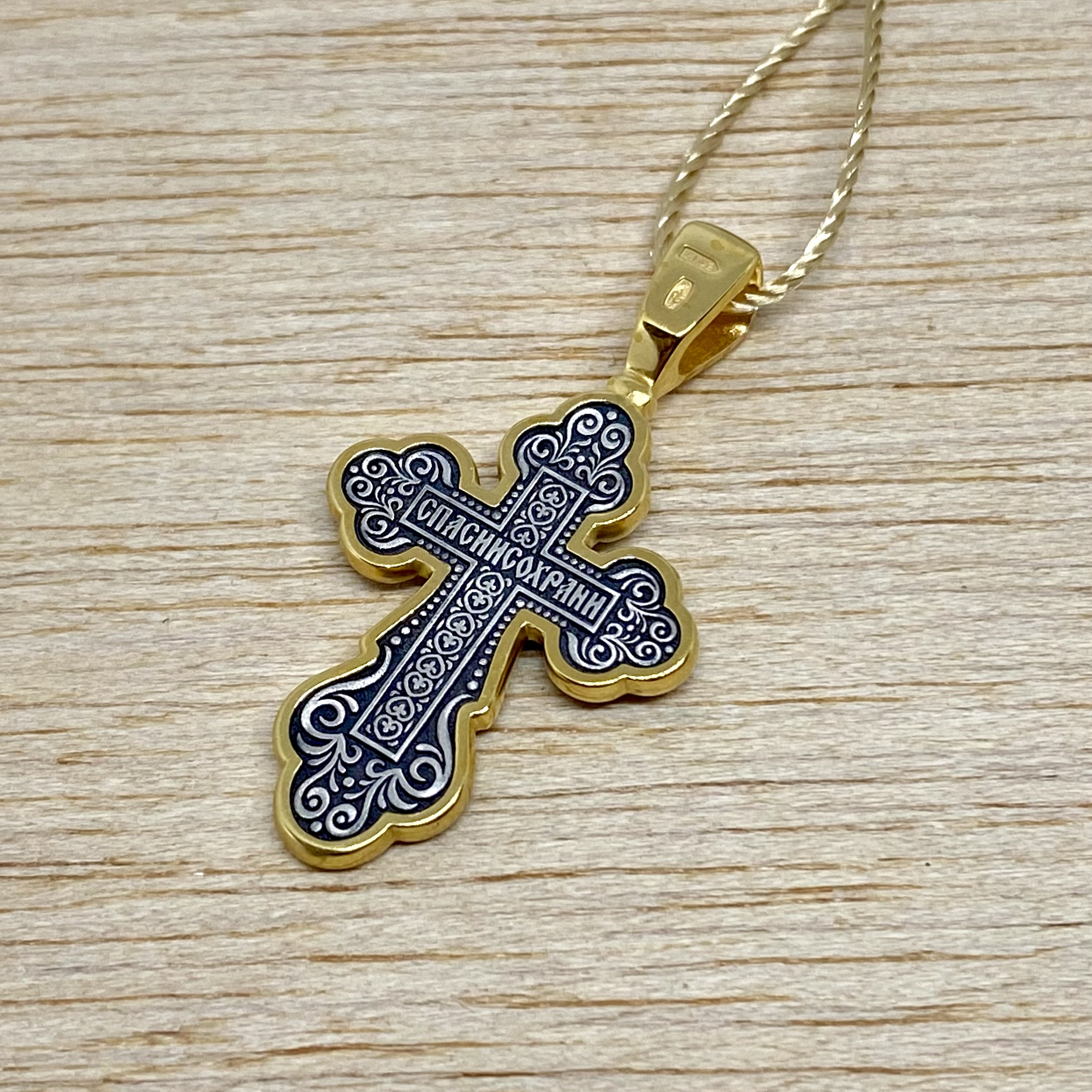 На обороте — короткая молитва, обращенная к Господу, которая традиционно помещается на нательных крестах: