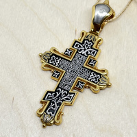 На лицевой стороне креста изображено Распятие Господа нашего Иисуса Христа.