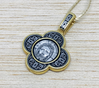 На лицевой стороне образа изображен Нерукотворный образ Господа Иисуса Христа, почитаемый как один из самых сильных защитных символов Православия.