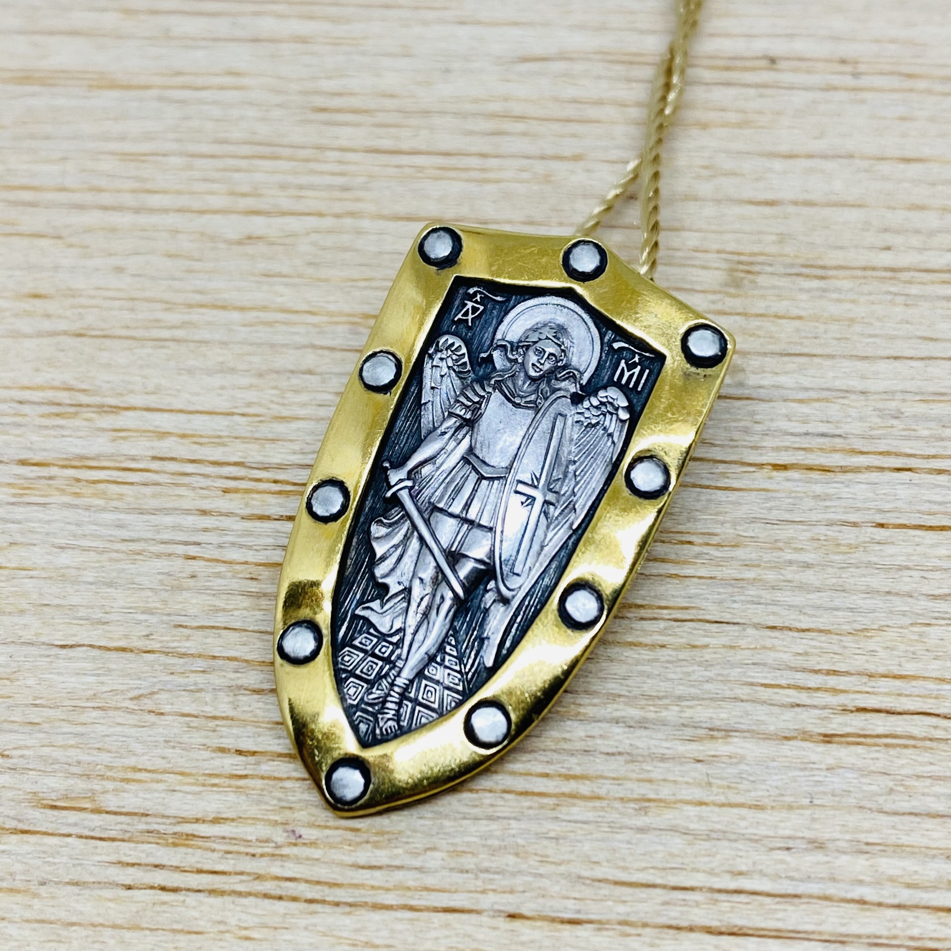 На лицевой стороне образка изображен Архистратиг Михаил. Могучий Архангел почитается как покровитель воинов и всех верных Богу и ведущих борьбу против сил зла, а также защитник душ умерших, страж райских врат.