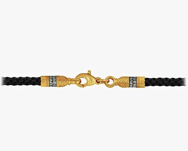 Шнур ручной работы выполнен из текстиля. На концах расположены концевики с молитвой: «Господи, помилуй мя грешного». Соединяет концевики замочек-карабин в форме рыбки. Толщина шнурка - 2 мм