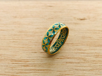 На кольце изображен древнейший «базовый» орнамент: складывающиеся в круги крестоцветы. В язычестве этот узор был символом непрерывности движения солнца и луны, где крест обозначал солнце, а круг — лунные сутки. В христианстве круг стал знаком Бога и вечности, а крест — символом Христа.