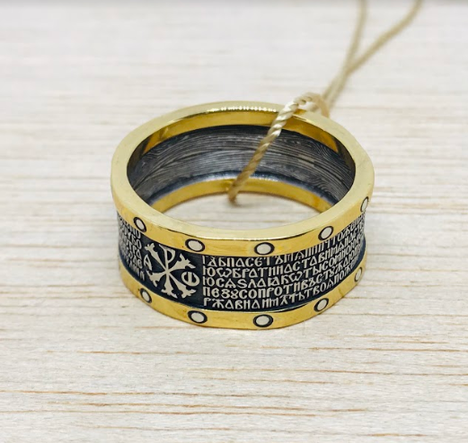 В центре кольца помещены начальные буквы имени Христа. Они образуют древнейший символ Господа – Хризму. Это монограмма Христа в виде пересекающихся букв Х и Р, которые на большинстве языков христианских народов пишутся одинаково.