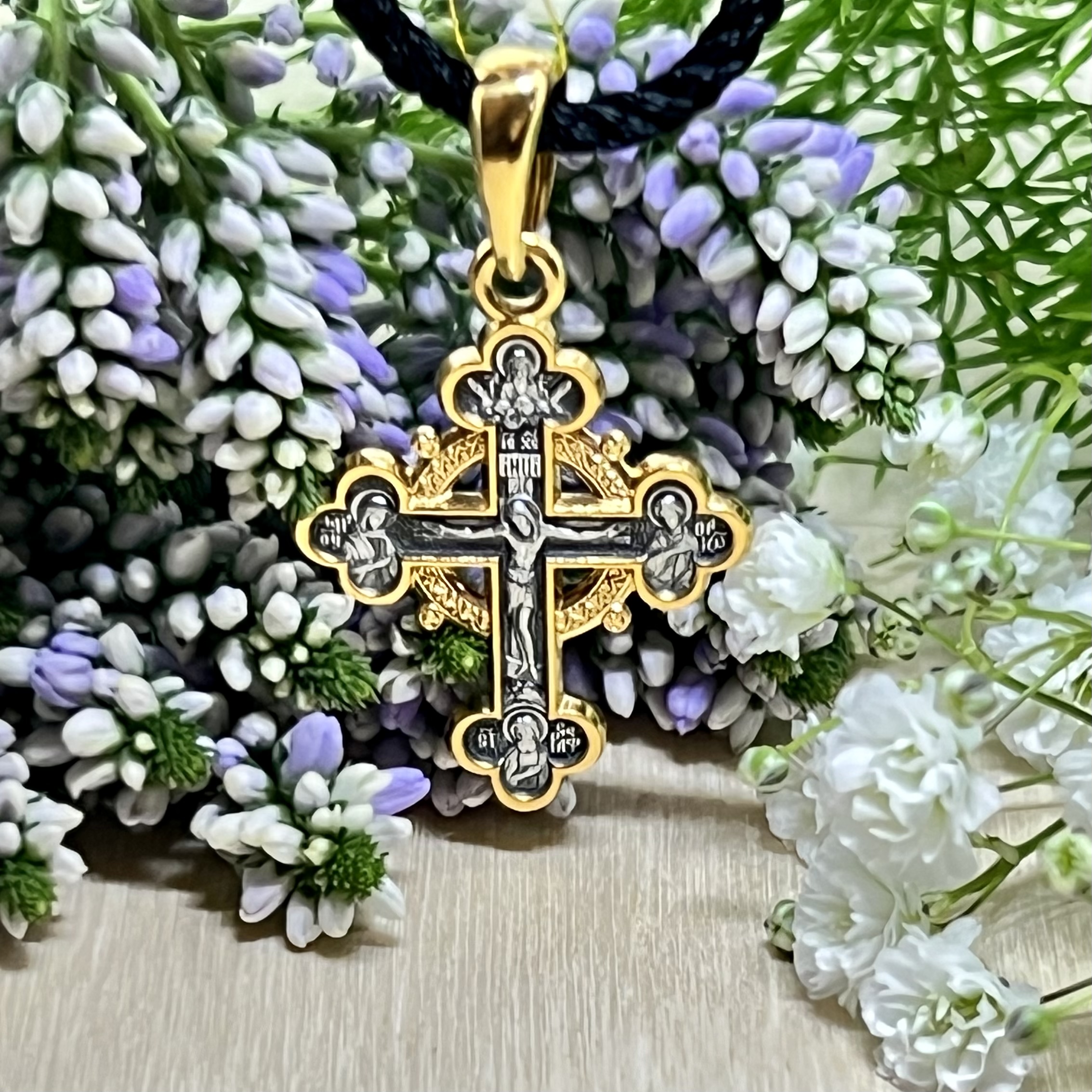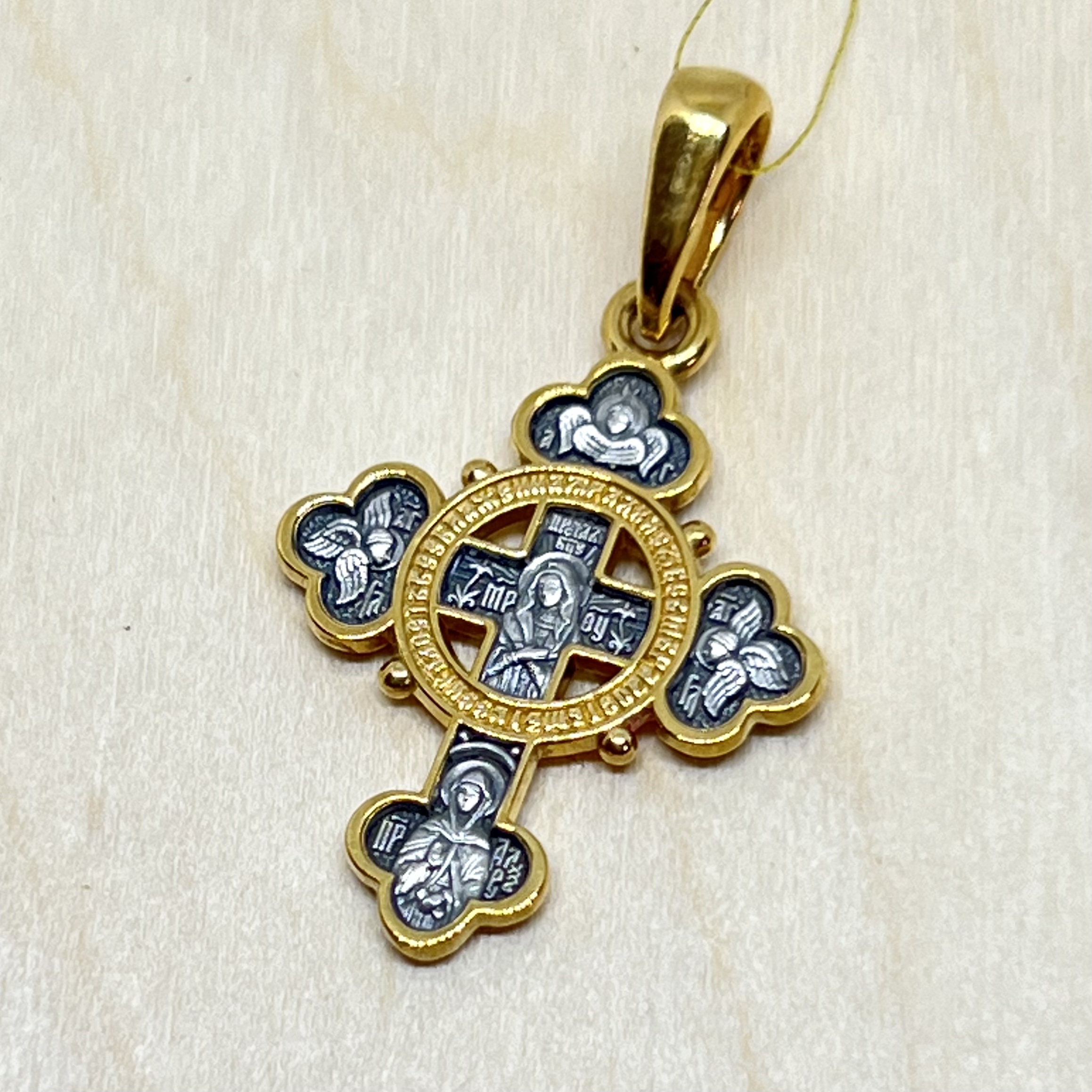 Крест выполнен как святыня Серафимо-Дивеевского монастыря, удела Богородицы в России. Форма его приближена к форме креста на куполе величественного Спасо-Преображенского собора обители. И на сам крест помещены святые, которые построили и прославили этот монастырь.