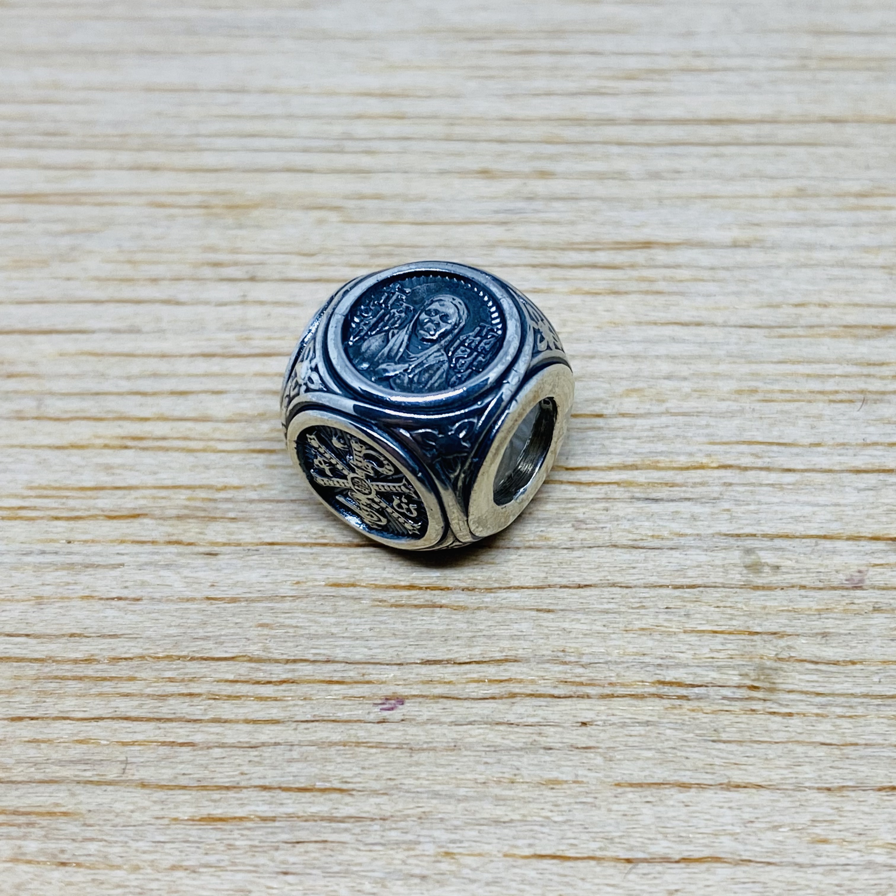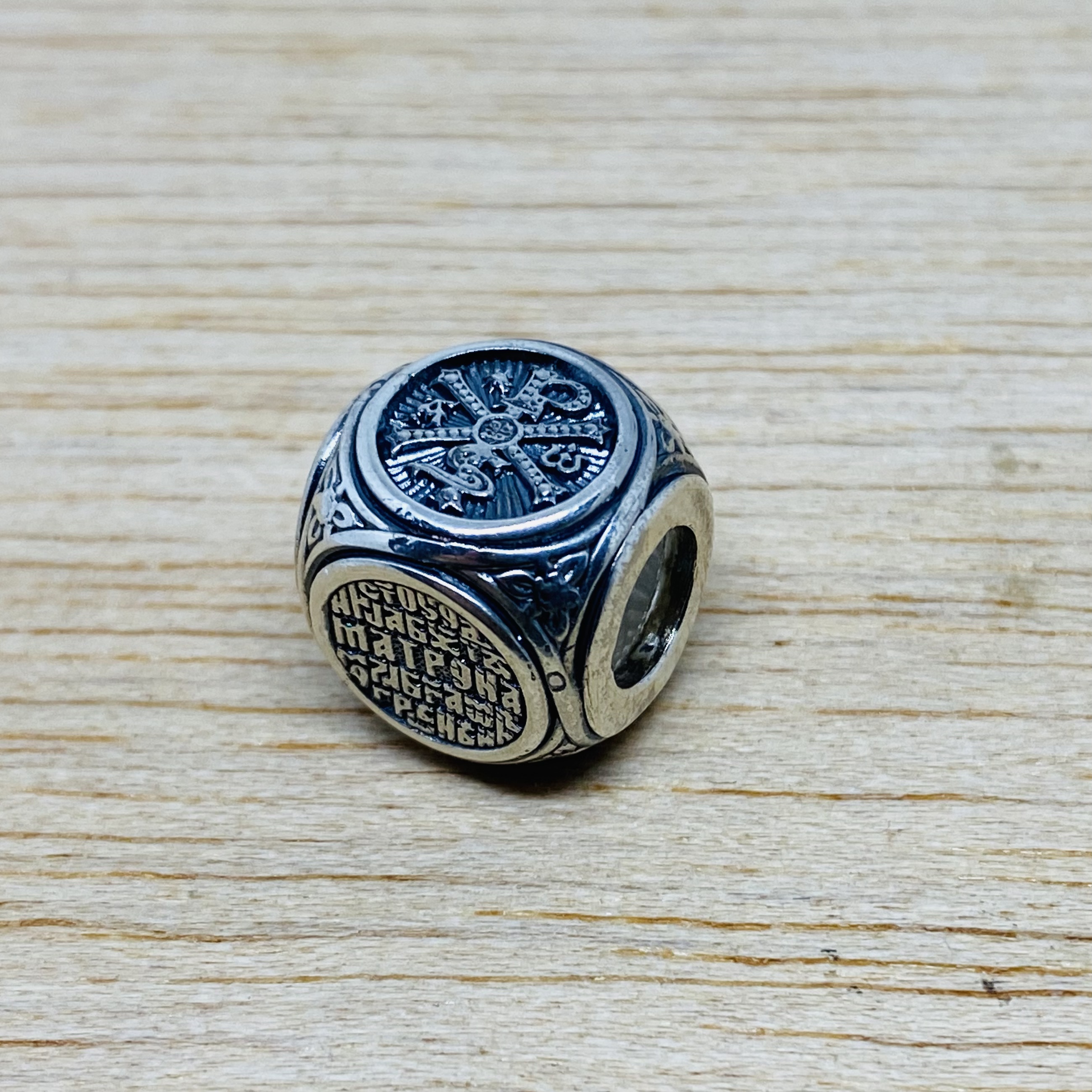 На противоположной стороне изделия помещен текст молитвы блаженной Матроне: «Святая угодница Божия Матрона, моли Бога о мне грешной».