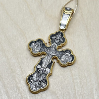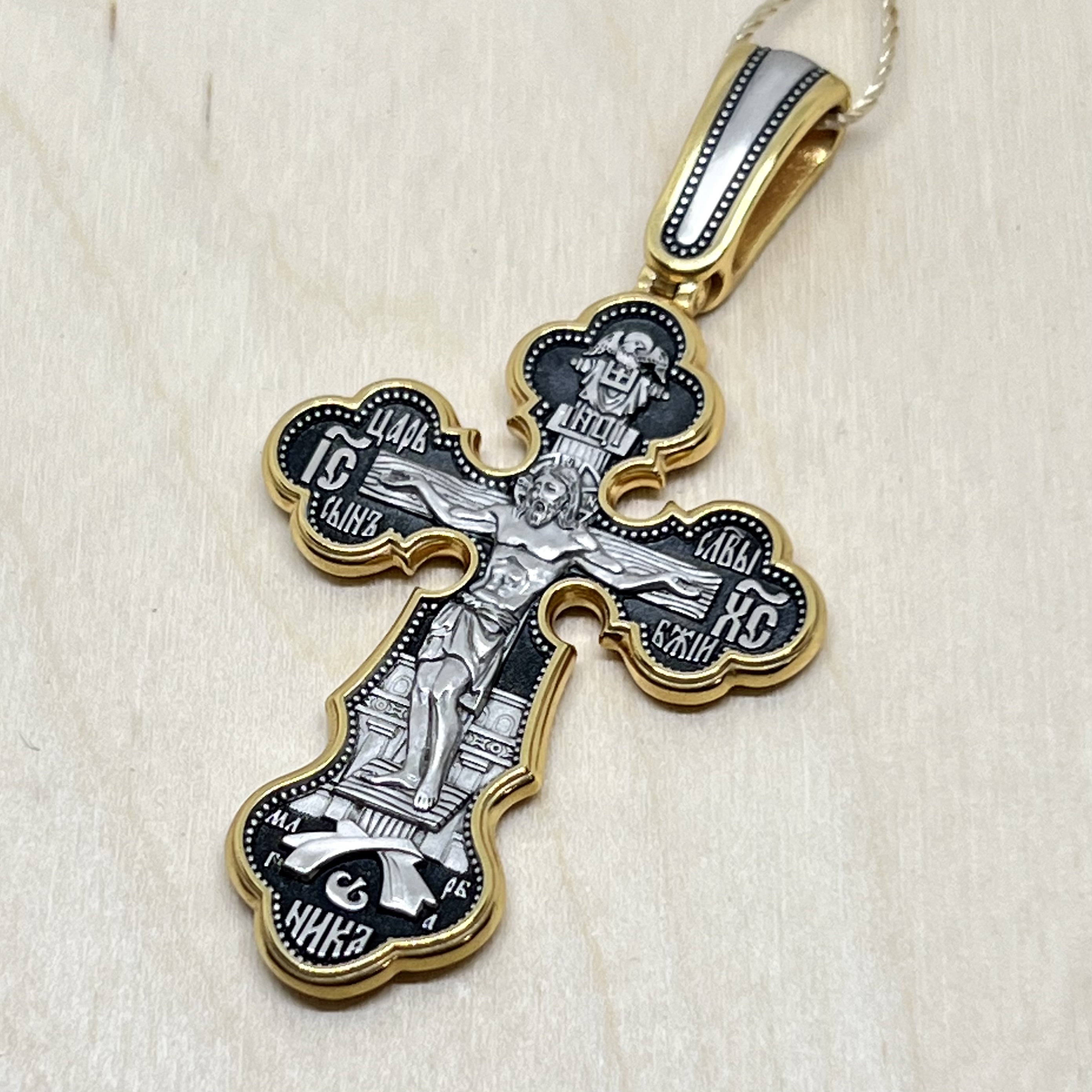На лицевой стороне креста изображено Распятие Господа нашего Иисуса Христа.