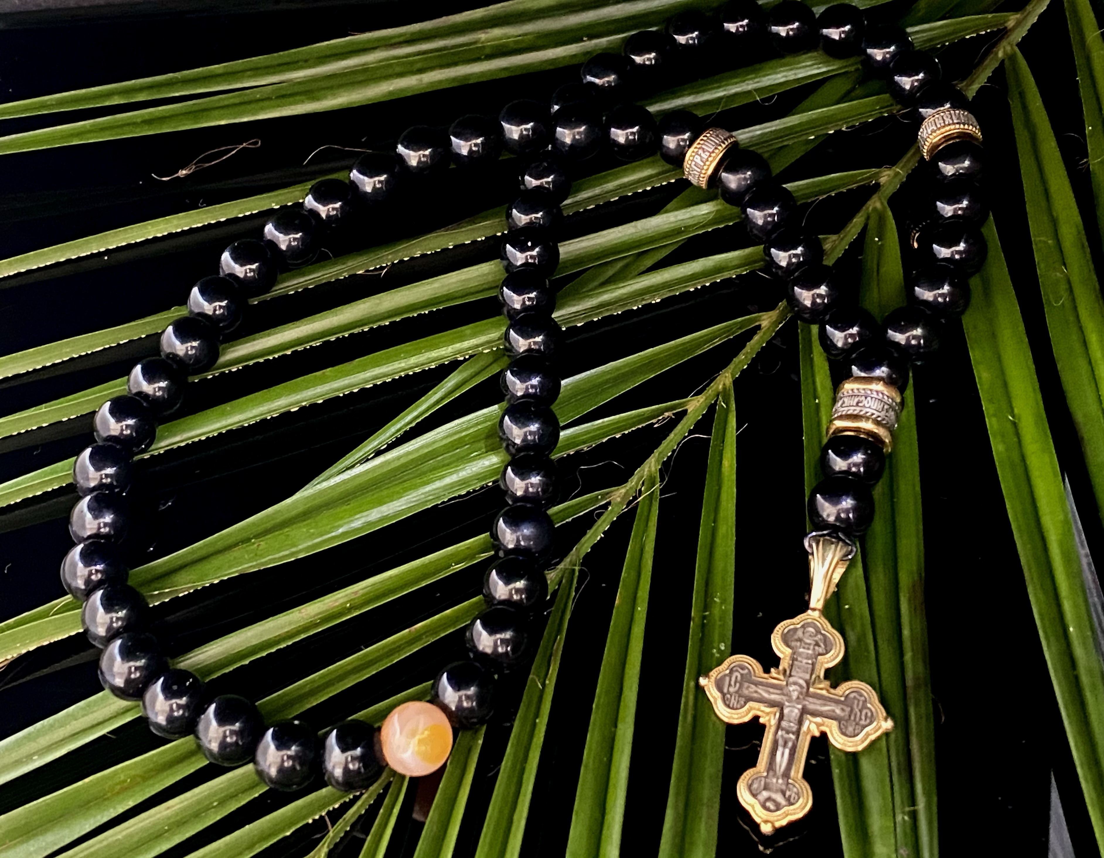 На бусинах помещены просительная молитва: «Господи, пошли благодать Твою в помощь мне» и защитная молитва.