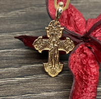 На лицевой стороне креста изображен выразительный образ Распятия Христова.