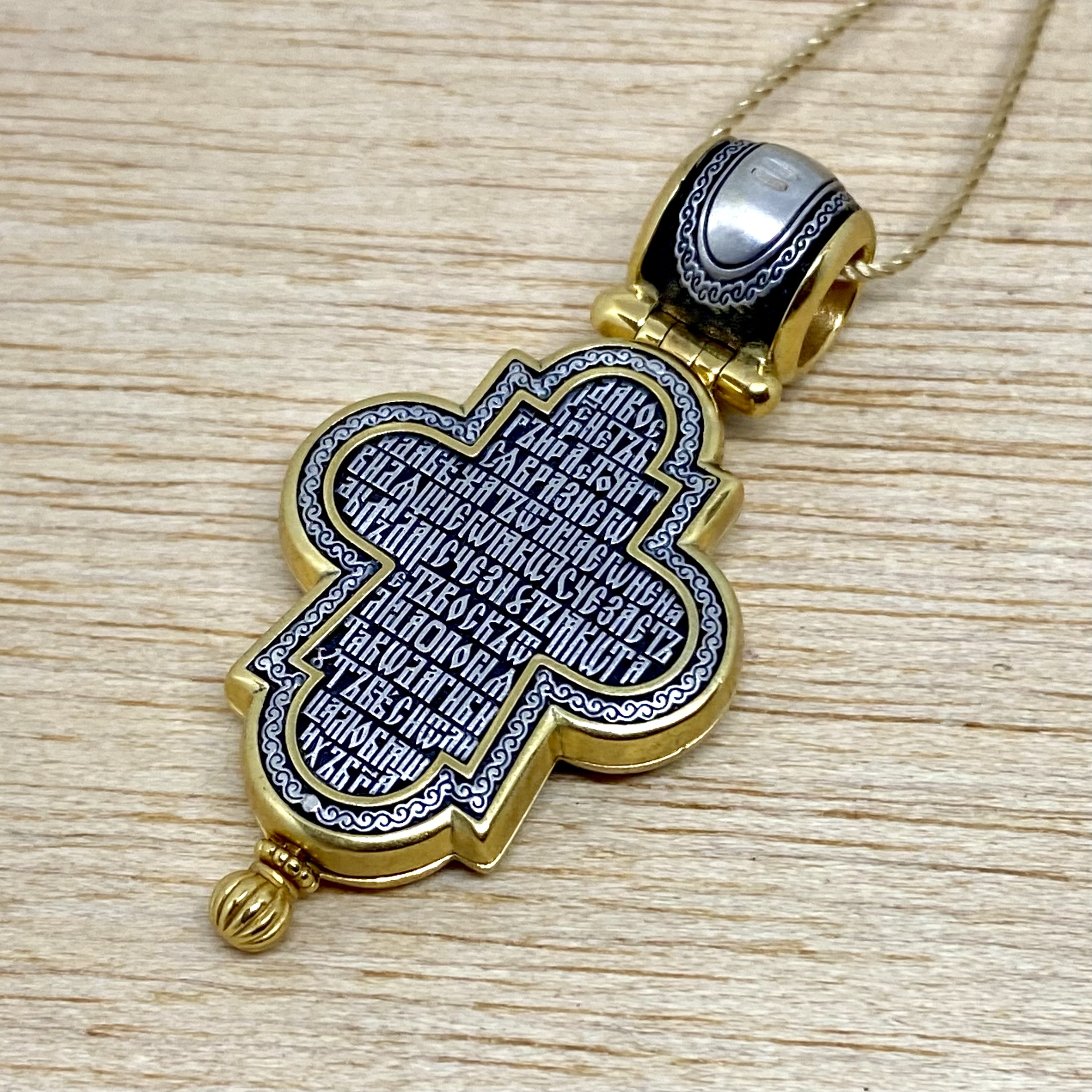 «Да воскреснет Бог, и расточатся врази Его, и да бежат от лица Его ненавидящии Его. Яко исчезает дым, да исчезнут; яко тает воск от лица огня, тако да погибнут беси от лица любящих Бога и знаменующихся крестным знамением, и в веселии глаголющих: радуйся, Пречестный и Животворящий Кресте Господень, прогоняяй бесы силою на тебе пропятаго Господа нашего Иисуса Христа, во ад сшедшаго и поправшаго силу диаволю, и даровавшаго нам тебе Крест Свой Честный на прогнание всякаго супостата. О, Пречестный и Животворящий Кресте Господень! Помогай ми со Святою Госпожею Девою Богородицею и со всеми святыми во веки. Аминь.»