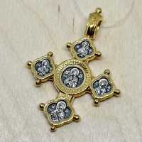 На лицевой стороне Иисус Христос является как Господь Вседержитель. Небо символически представлено золотым кругом, от которого лучами расходятся перекладины креста. На трехчастных, во образ Пресвятой Троицы, концах перекладин изображены высшие ангелы.