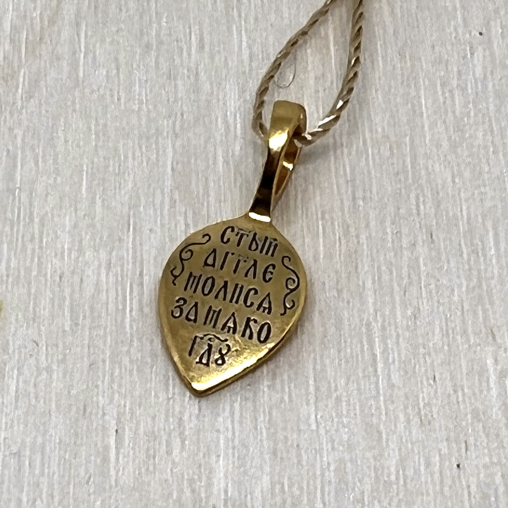 На обороте подвески молитва: "Святой Ангеле, молися за меня ко Господу".
