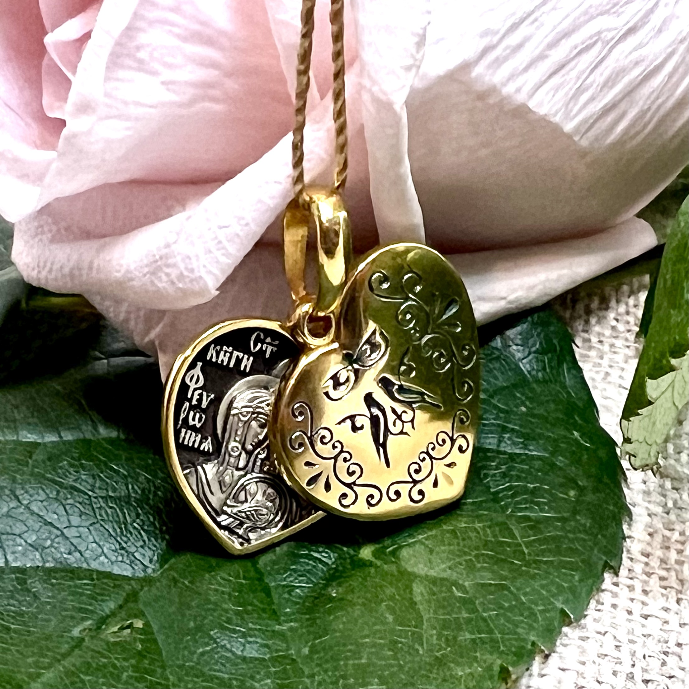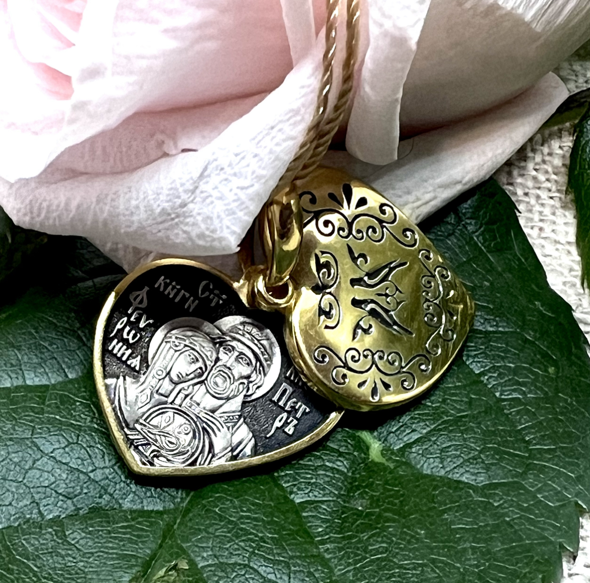 Кулон посвящен святым супругам Петру и Февронии, покровителям семьи и брака. В день их памяти отмечается праздник — День семьи, любви и верности (8 июля).