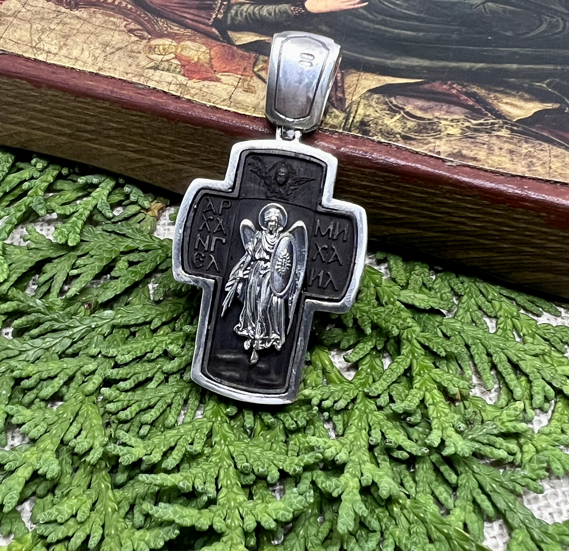 На лицевой стороне изображён Спас Нерукотворный, сверху расположен шестикрылый Серафим
