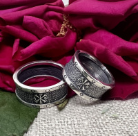 В центре кольца помещены начальные буквы имени Христа. Они образуют древнейший символ Господа – Хризму. Это монограмма Христа в виде пересекающихся букв Х и Р, которые на большинстве языков христианских народов пишутся одинаково.
