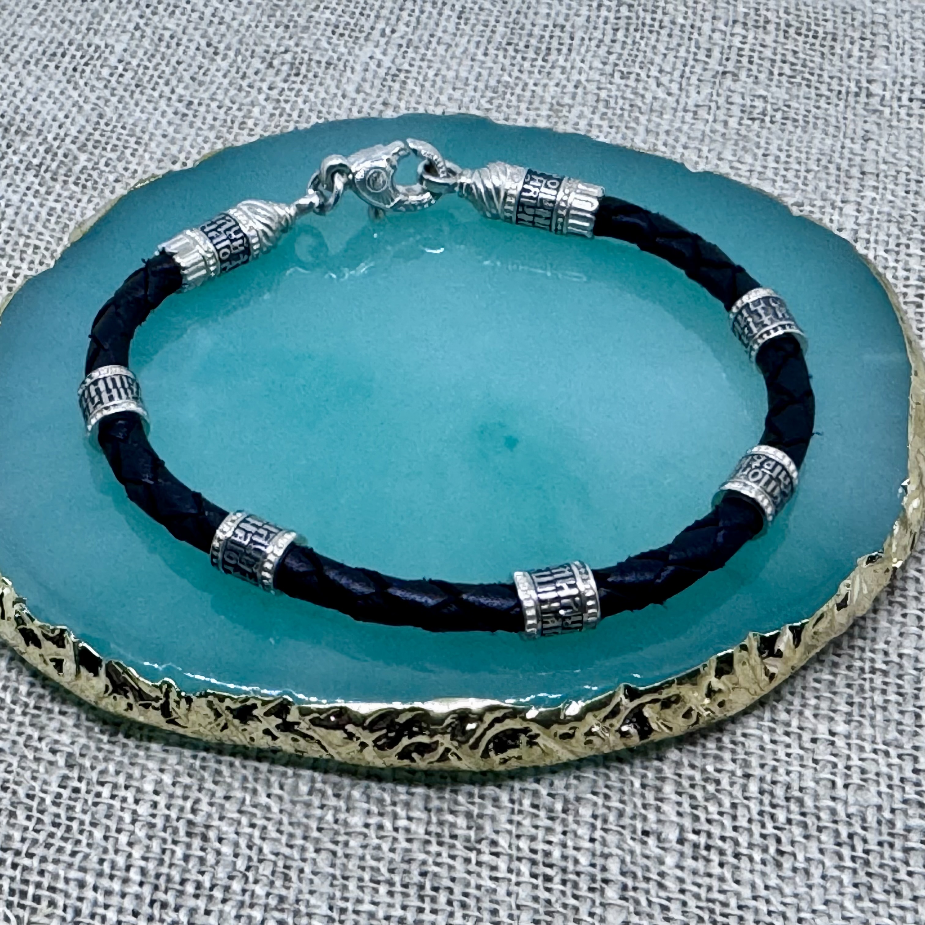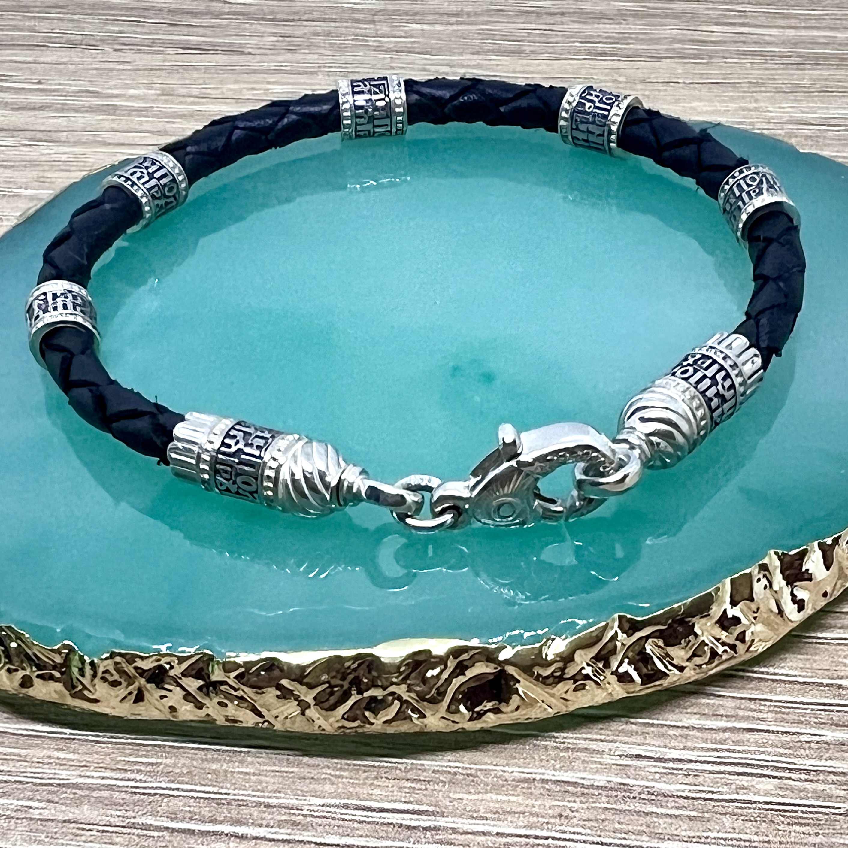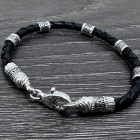 Браслет из натуральной кожи с элементами, выполненными из серебра 925.